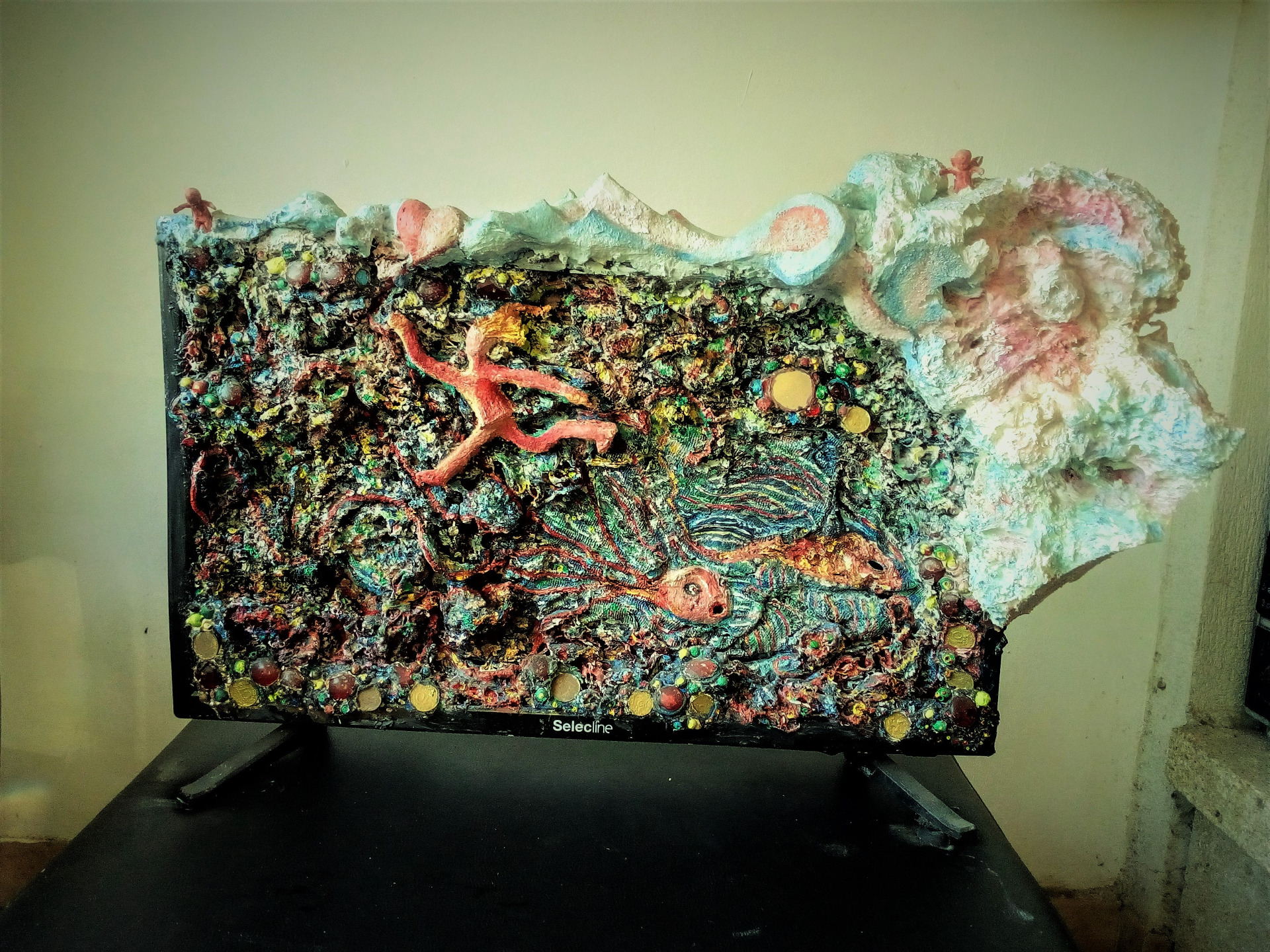 calcination,modeling paper mache,oil painting,2020,50/44 cm